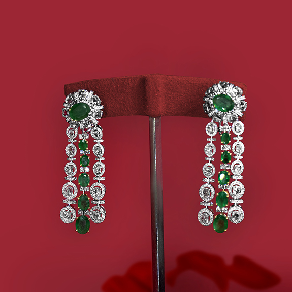 Diamond and Emerald Earrings,A perfectly balanced, modern pair of diamond and emerald hangings that are flattering to your elegant flair.
